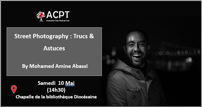 L’ACPT continue son cycle de formation avancée avec une séance dédiée à l’art de la streetphoto et plus particulièrement ses astuces. La séance sera animée par Mohamed Amine Abbassi.